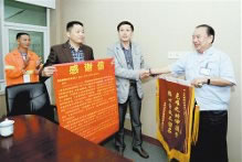 近日,在北部新区海德世拉索集团公司,伤者童光萍的家属和领导将锦旗送给做好事不留名的张本焱先生(右一)。9月10日,北部新区鸳鸯街道市政园林绿化环卫所工人童光萍,在车道进行环卫保洁作业时被摩托车撞倒,头部流血不止。此时,张本焱先生驾车途经此地,主动停车将其送至该区第一人民医院,并留下了1000元现金后默默离开。伤员家属在交巡警协助下,用车牌信息查得不留名的救命恩人是重庆海德世拉索集团总经理张先生,于是上门感谢。