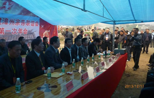 2013年12年11日(农历十一月初九)是福建漳州市华安县高车乡童氏慎德堂冬蒸典祭的吉日,漳州市童氏宗亲联谊会第一届第一次年会也在此时隆重召开,来自台湾的世界童氏宗亲会理事长童清松及台湾桃园宗亲会宗亲26人、浙江宗亲1人、广东宗亲2人、泉州宗亲10人、莆田宗亲46人、三明宗亲1人等各地童氏宗亲代表80多人,加上慎德堂派系的宗亲500多人参加。