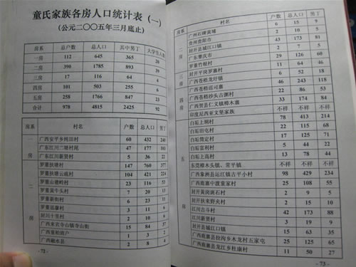 广东封开童氏派出雁门,始祖遗德公本居南京珠玑巷,因世乱迁往浙江省绍兴府开基立业,族性蕃昌,明洪武元年(1368年)始祖遗德公贸易江湖,自浙入粤,寄肇临封,始居广东封州城内(今江口镇),子孙分为五房,繁衍至广东西部、广西东部的数十个童氏村寨。2005年续修有《封开童氏族谱》,人口近5000。
