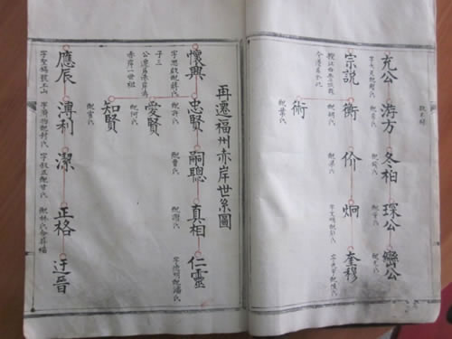 始迁福建福鼎的一世祖迂晋公于清乾隆年间自浙江泰顺四溪迁出。上祖怀兴公居泰顺半岭,久仁公居泰顺四溪,七世开始排字辈:有,日,连,元,启,昌,振,克,家,德,贤,继。十二个字辈由浙江泰顺祖籍地随家谱带出,并且口口相传至今。目前福鼎迂晋公的后裔200余人,正准备继修家谱(详见以下家谱与祖祠照片)。