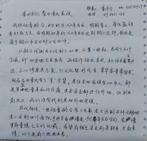 渝东南黔江区阿蓬江镇童氏概况之瓜瓞世系