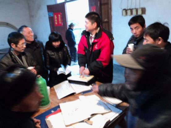 到航头镇吊钩岭村,村长童永松接待了我们一行9人。翻开家谱,其始祖为世肇,生于宋绍兴元年(1131),迁于兰溪香头(即今兰溪市香溪),建村已有近850年历史。距其村十余里也有一童姓村庄,但与其是同一支,不是我们所要寻找的。
