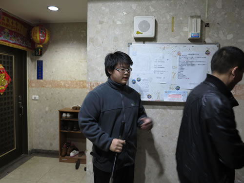 约1小时后,我们在桃园县一条偏僻的至善街上找到了住址。下车后,路上遇到一个小胖哥,一问,他就住在童昌洪老大哥的楼上。热情的小胖哥,放弃了办自己的事,先领我们去童昌洪住处。台湾人的热情在小胖哥身上再一次得到了印证。