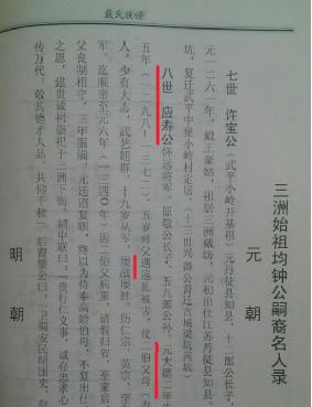 临近中午,听鲁溪梓叔说,前面几户人家是戴姓,传言其祖上本姓童,因祸改姓戴。我们一行遂前往拜访此地戴姓宗亲(见上图)。中午,受当地戴姓宗亲的邀请,我们一行在戴姓书记家中就餐,吃完饭我们便启程前往上杭回龙寻找百十三郎公的墓地。回想刚到戴姓宗亲家门前,振荣叔便迫不及待的向前打招呼,并与其交流(见下图)。戴姓宗亲非常热情的接待我们(见下图),交谈间,听其讲述,其祖上口传下来,当地戴氏本姓童,后为避祸改姓戴,村里有个宗祠,就是由童氏宗祠改成戴氏宗祠。而其祖上最早只能追溯到八世祖(见下图),其一到七世祖无考。据振荣宗亲资料显示,百十三郎之子昌生公(号李孙)与明洪武27年从上杭回龙迁出,据振荣叔推断,假设他青年时迁出,那么其父百十三郎肯定是元朝人。为此,戴姓宗亲还拿出三洲戴氏族谱给振荣叔查看(见下图)。查阅知,其八世祖应寿公,生元大德二年,这与台湾振荣叔的推算不谋而合。再加上当地戴氏宗亲相传的传言,其本姓童,因祸而改姓,因为百十三郎公婆为戴氏,这充分说明了三洲本地原有戴姓居住,据鲁溪宗亲梓叔说,因当年三世祖婆墓葬在三洲“天子地”,而触犯朝廷,其童氏宗亲因此受株连。其中一些童姓族人便随当地戴姓改姓戴,因而避祸,所以依笔者推断,三洲原有戴姓居住,其中一部分戴姓为童姓改姓而来。