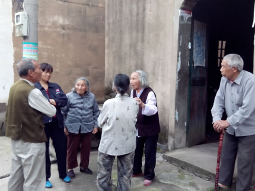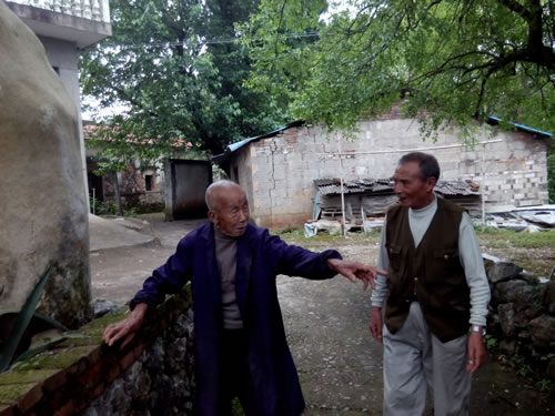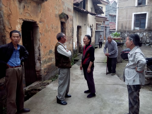 有一妇女带我们去见了一位男性老人,后来知道其已经八十七岁高龄,他说吴大愰这个人知道,很有名,其父好像是叫徐乾的。我说怎么叫吴大愰,是姓吴吗?他说姓徐,是怎么叫这个名也不知道。我听到后很高兴,至少是姓徐,不姓吴,人应该对上了号。他很热心,说带我们去吴大愰的后代那儿去,而老爸还在那与其他人在交谈,身边已经围上了六七个男女老人。