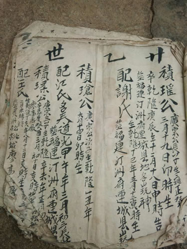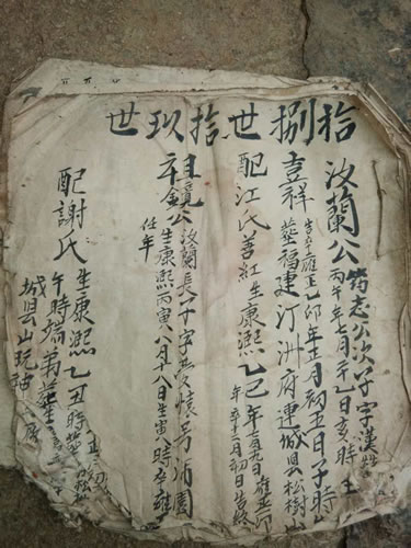 近日在童氏宗亲微信群里,经贵州铜仁童秀发介绍,贵州铜仁松桃县蓼皋镇木溪村童氏于童氏族谱对接上。首先感谢童秀发宗亲的热心引荐发钱宗亲,连城族谱记载:松桃县蓼皋镇木溪村始祖为连城童氏瑗公宽房二十代建宗、恒宗迁居铜仁府廖高市,铜仁的童发钱宗亲提供的手抄本谱从世系、名讳到配氏、墓址都与连城族谱记载一致。以下为连城童氏族谱与铜仁松桃县童氏部分资料: