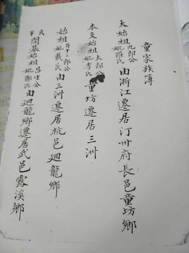 前一天参加完连城童氏祭祖活动后,由永定、连城、长汀、广东、贵州等地的宗亲梓叔商议前往上杭回龙寻找上杭童氏的一个重要分支,百十三郎公的墓。2017年9月24日早上六点多,我们一行十一个人便从连城出发前往回龙,这是我的第二次回龙之行,去年六月份与台湾以及武平的宗亲去过一次,这次二次入回龙主要是联系回龙的一个林姓老人家和上次有带我们去寻找墓地的梁姓老人,询问他们后续寻找的情况。根据相关资料显示,百十三郎公原居长汀三洲,后为避祸沿汀江而下迁往上杭回龙,一部分留在三洲的为避货随母改戴姓。公生二子,一沿汀江往上定居武平鲁溪,另一则沿汀江而下到达峰市。期间我们详细询问了两位回龙老人的相关情况,以及到另一处寻找,但是可惜都没有实质性的收获,在此提供一些资料,望各地宗亲有知道相关情况资料的人与宗亲网联系。