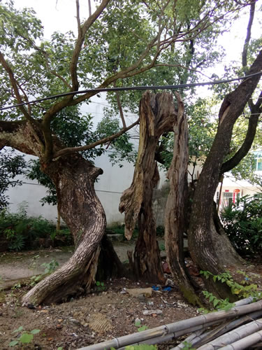 因时间关系,饭后没有休息一下,直接看了童蔡村,环境卫生目前并不是太好,房子基本上都是新的,几乎每户门前都有院子。边走边看,他们一边介绍,童蔡村,主要是二个姓,一个姓蔡,他们来的早些,一个姓童,来的晚一些,以前童姓人口要比蔡姓多,现在童姓人口要比蔡姓人口少,童姓家族人口184人,二姓之间以小水渠为界,我们到了水渠边看了,是从稻田边水渠流入,穿村中流过,水不大,却很清,许多人都用此水在清洗那些用具。我问了该村是否有祠堂,说过去有,早就破败拆除了。我执着的往回走,到了大樟树下,看了樟树,那大樟树已经分叉成四株模样,有明显的被火烧的痕迹,实际上如果四株合在一起,那是相当大的。再在那旧宅基地边看了看那口老井,上面井圈为后加,井圈下面是大块的长条石架立在井口,水位很高。