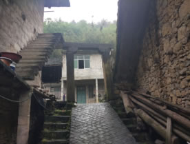 “童家湾”当然是我们童家居住的地方。在细雨霏霏中我们一路前行。古道班驳支离似在迎接迟到的晚生后人,残垣颓墙诉说着往是而今非。进入童家大院,大大的院坝,己不再属于童家的院落,精美的雕饰,有些倾斜的大朝门……这里曾是三百人济济一堂的大家子,这里曾是集各行各业于一院自给自足的大乐园……往境已不再,往事难述说。一只不知名的小鸟飞过,不由心有伤悲:旧时童家堂前燕,飞向哪里才是家……