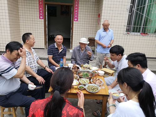 由于时间关系,从花地回来又去看了童恒军父亲,那是个风水宝地与福地。奇巧的是,天黑时,我们刚到童恒军岳母家,天下起了雨。晚餐在这喝酒、吃粽子等,那端午在外,没有在外的感觉,如同在家一般,在此我们吃到了峨边之乡村风味,渡过了愉快的端午之节日,感谢一路宗亲的招待。