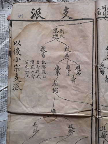 一本为民国十九年印刷版,由谱可知:啟贵公为可月公之孙,其父思廻公为其次子。世系图啟贵名下注明:“抱与罗姓到今建武顶冠山,皆公之子孙”。