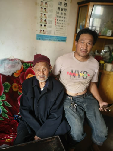 我所走的一路,也许就是前人所走的路,一条脚印还在,但又见不到的路,冥冥之中,前人在指引着我的脚步。我进村前在水塘前碰到的第一个人就是家门童世全,热心亲切,黑黝结实。带我直进一头门,到了童光银家。这是位九十高龄的老人家,身体硬朗,衣着整齐。我问,世全则与其大声耳语,断断续续,我对他们这支的来历听了个大概。他们的老祖在威宁居住地多是回族人。那年玉米成熟时,回回强盗欺侮童家人少,又来偷抢玉米,因年年被偷,劝说无效,本想教训一下,却没有想到失手将人打死,爷爷辈的只好跑了出来。
