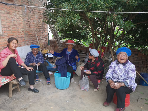 左拐往前走了沙坝村罗沙块自然村3至5组,想必6组应该不远,担心过头,恰好有一位在抽水浇苹果树的三十来岁小伙,一小孩坐在三轮车上自己在玩耍,6组是有姓童的,还在前面村庄尾。那条路觉得特别的长,走着走着,到底自己走出去有多少路,都没有了数。再看两旁,或隔段路或几栋挨着,都是新建的或在建的房屋,也不见有尽头的意思。好不容易见一妇人在浇水,再问了一下,说对面路边那几户都是姓童的。哦,就是本想问又没有问的那几位在做事的老妇。担心年纪大听不懂,想不一定是姓童的吧。不是一家人,不进一家门,到底还是姓童的。过去打听,她们好奇反问我是哪里的,我简单的解释了一下,说来找姓童的,想问问从哪里迁来,有没有家谱。他们都说没有见过家谱,好像听说是从威宁来的。他们这支有五个老祖。又说道,这事要年纪大的人才清楚。并说前面左拐村庄(6组)有位九十来岁的童光银可能知道多一点,但是其耳朵很聋,恐怕你的话听不懂也听不清。心里想道没有关系,总能了解到一些情况。我说给她们拍张照片,她们笑了笑,没有说不同意。