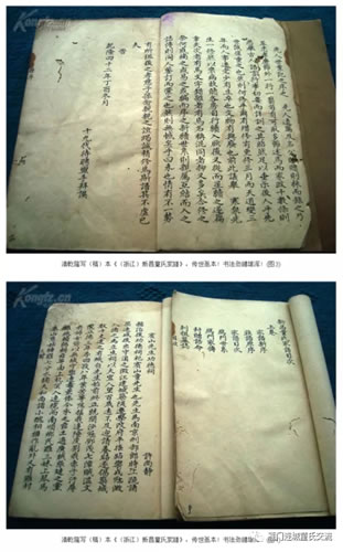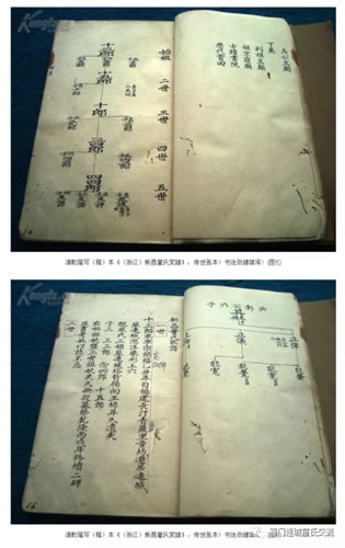 笔者继续在网上搜索相关资料,在浏览到“童氏宗亲网”时看到有一文“福建汀州府童氏源流考(详见/newss.asp?id=2422&classid=45)”,里面有刊登三张老谱,笔者见其成色、字迹、谱载资料,与“新昌童氏家谱”十分相似。于是再与之前找到的那张谱对比,确定是同一支,该文发表于2015年12月31日,作者为长汀童化平宗亲。顺藤摸瓜,笔者联系上化平宗亲,交谈中得知该谱为其早期收藏,还有好几张谱,当时保存照片的手机已遗失,找不到当时的联系人了,不过化平宗亲提供了一个线索,该谱是在“孔夫子旧书网”上看到的。于是笔者在孔夫子旧书网上继续搜索,果真找到了一个藏品“清乾隆写(稿)本《(浙江)新昌童氏家谱》,传世孤本!书法劲健雄浑!”,详见下图(笔者与该店铺商家联系过,该谱已转让给北京一家拍卖行)。