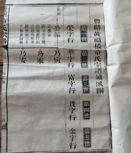 新增二十字派:天运启文光 显声传胜邦本宗新世绪 奕代必昌芳。欣喜之情溢于言表,特此为记,并附上《丰溪童氏宗谱》之《丰溪童氏创修宗谱实记》一文以供参考。