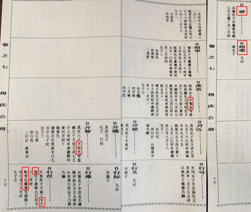 时间又来到2021年6月23日,于是便想着在百度地图上随便搜“黄福桥”,还真有此地名。于是想着在“黄福桥”附近查找是否有一些商店有留下联系方式的,功夫不负有心人,果然在距黄福桥几百米处找到一个名为“童家食府”的餐厅,而且上面还留有手机号码,心中一片欣喜。于是马上通过微信搜索手机号码添加了微信。后经询问得知其叫童福强,就是黄福桥人,经其介绍推荐了其兄弟童福飞,福飞宗亲又推荐了其侄辈童禄武。禄武宗亲说他们确定从连城迁出,后发了一张他们始祖的资料给我(见下图1),其清楚的记载“始祖公振,清康熙年间由福建汀州府连城县迁居丰溪三十三都黄福桥”。心中甚为高兴,于是马上查阅连城谱,果不其然,查询到相关资料(见下图3),《连城童氏族谱》清晰的记载十五世祖“行仪:开智次子,字咸干,号公振,生康熙乙巳四月十二亥时,配李氏肇璧,生康熙丁未八月十六亥时,生子五,长 乃密,次乃安,三乃宣,四乃家,五乃宴”。当即把连城族谱记载相关资料发与禄武宗亲,从看到资料到寻找对接上,只用了1分钟时间。随后禄武宗亲又发来他们谱序相关资料(见下图2),上面清晰的记载了公振公上代先祖的名字,还特别注明先祖口传资料,不确定其先祖、配偶名字是直系或旁系,因交通不便无法到连城亲阅族谱校对,交代如果后世子孙有条件应前往查阅连城谱。经查阅对比,与连城记载的十一世祖“瑗公”,十二世祖“绍荣”,十三世祖“茂功,字惟志”,十四世祖“开智,字明光”与其配偶均一致(见下图4),包括公振公子乃密等,六代名字连城童氏族谱记载均一致。