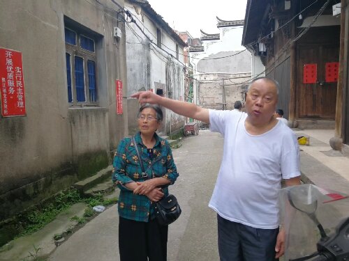 右为指认童氏故宅、提供童荣德信息的邻居吴金仙老人,