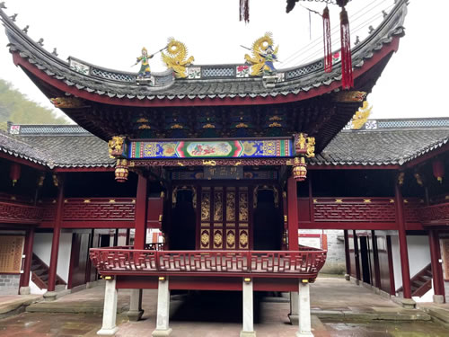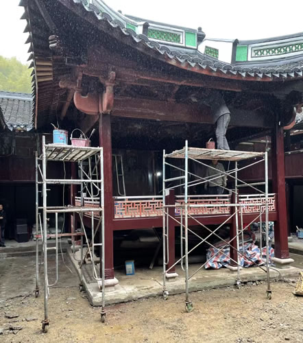 餐后我们在卫生院退休的童中高宗亲陪同下驱车来到山美水清的童夏村,童夏村地处鄞州与奉化交界的菩提岭下,也是赤堇童氏集居村,与童村童氏同宗同亲,村中有一座建于清康熙年间的童氏宗祠,该宗祠为鄞州区重点文物保护单位,目前童夏村童氏宗祠正在修缮中。邹谷童氏始祖墓就建在宗祠对面的山上,因天下着中雨童志龙宗亲未能实现上山拜祭祖墓的意愿。我们也只能意犹未尽地驱车离开了童村。