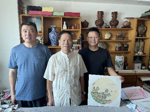 2023年8月11日上午,浙江江山市童洪海和童春云宗亲来余姚市河姆渡镇童家走访,并亲切拜访童氏宗亲童岳砚老人。从小喜爱书画的童岳砚,为向远道而来的宗亲表达同根同宗亲情,特意向童春云宗亲赠送了自己的书画作品。
